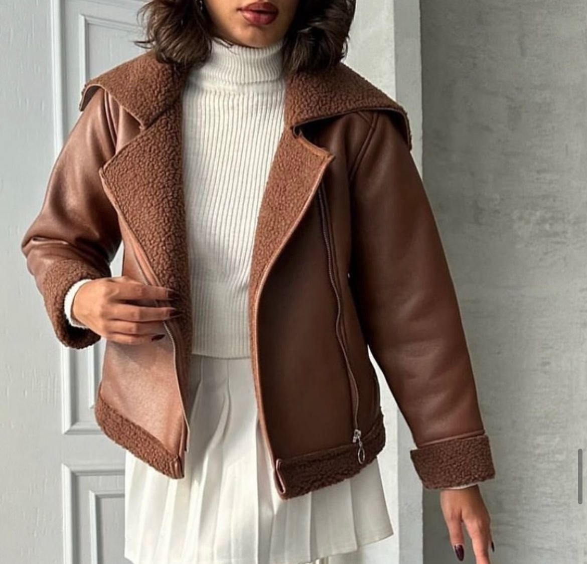 Crafted from high-quality leather, this jacket is designed to stand the test of time while providing unmatched comfort. The rich texture and polished finish give it a modern edge, while the practical front zipper ensures easy wearability and versatility. Whether layered over a dress or paired with jeans and boots, this piece embodies the art of stylish and effortless dressing.